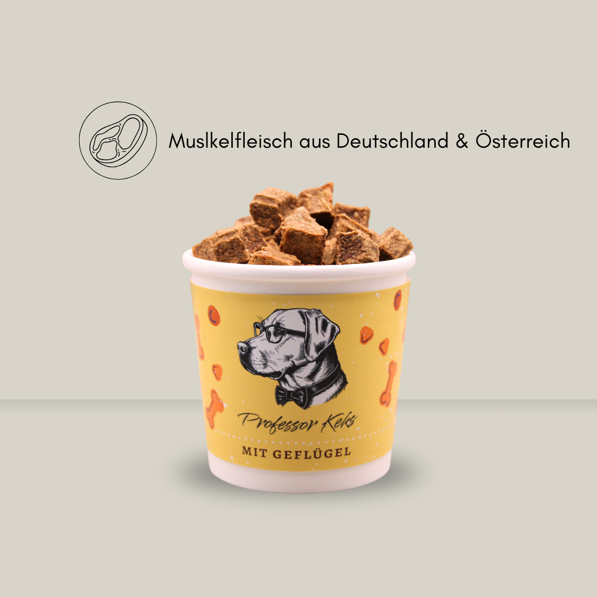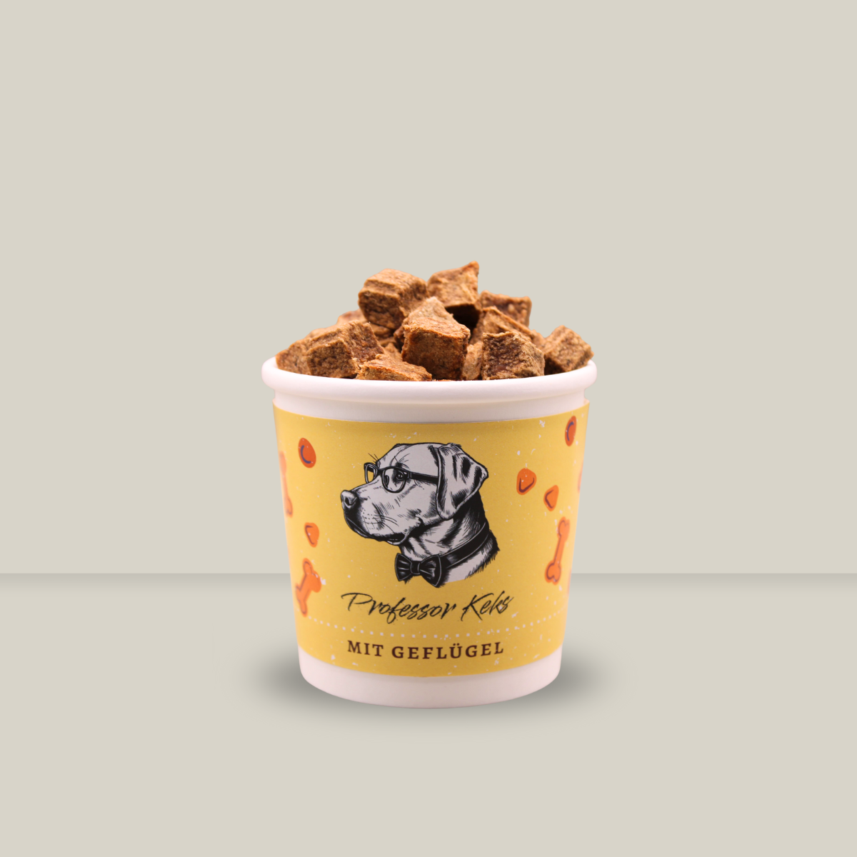 Unsere Genusswürfel Huhn sind die ideale Belohnung für anspruchsvolle Vierbeiner! Mit einem besonders hohen Fleischanteil von 96 % Hühnerfleisch überzeugen sie durch intensiven Geschmack und beste Verträglichkeit. Verfeinert mit 3 % Omega-3-Fettsäuren für Haut, Fell und Herzgesundheit sowie 1 % wertvollen Mineralstoffen, bieten die kleinen Würfel nicht nur Genuss, sondern auch einen echten Mehrwert für die Gesundheit.