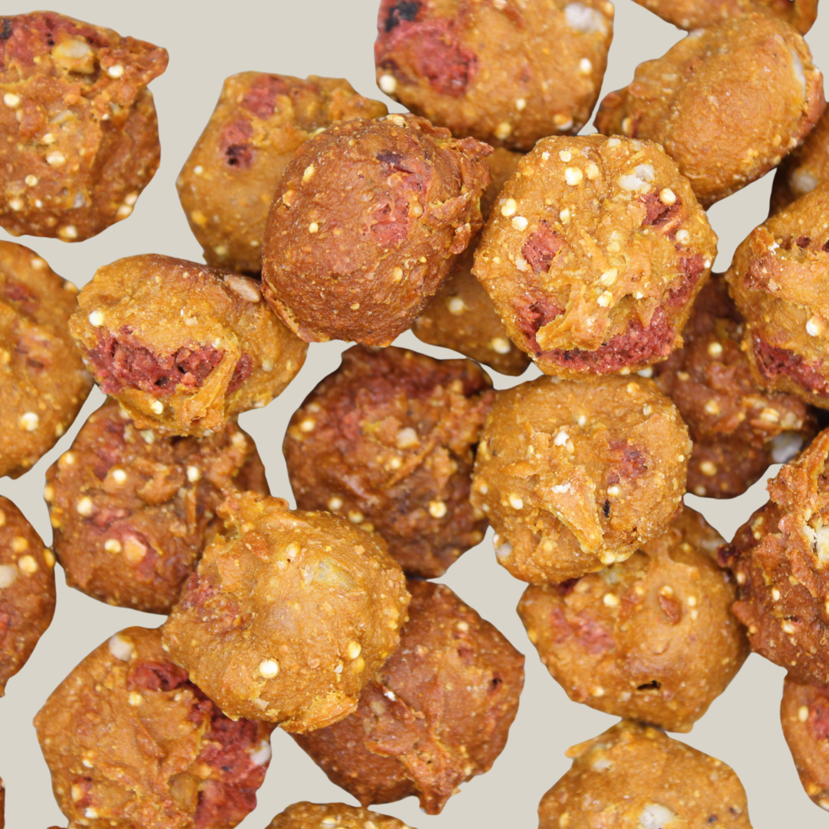 Die Basis aus Kartoffelflocken, Kartoffelmehl und Lupinenmehl macht den Keks besonders bekömmlich. Hochwertiges Quinoa (5 %) liefert wichtige Aminosäuren und Mineralstoffe, während getrocknete Aprikosen (4 %), Birnen (4 %) und rote Bete (3 %) für natürliche Süße und wertvolle Vitamine sorgen.