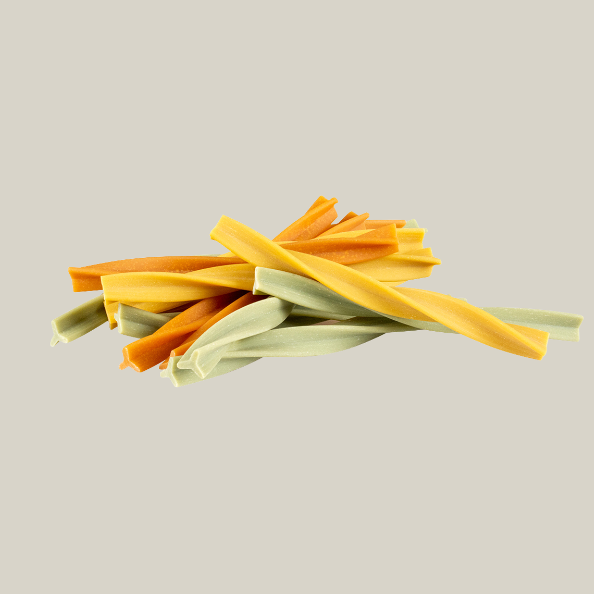 • Weiche, verdrehte Form – fördert Kauspaß & Zahnpflege